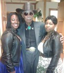 were waiting for a subdued person, a person perhaps who needed to be assisted, a person perhaps – who walked slowly and breathed slightly — were completely surprised when dad emerged – decked out in a dark gray suit – in great shape, wearing a black cowboy hat and dark sunglasses – dancing around greeting everyone – with his hands up in the air – going to all of the tables, dancing with joy.